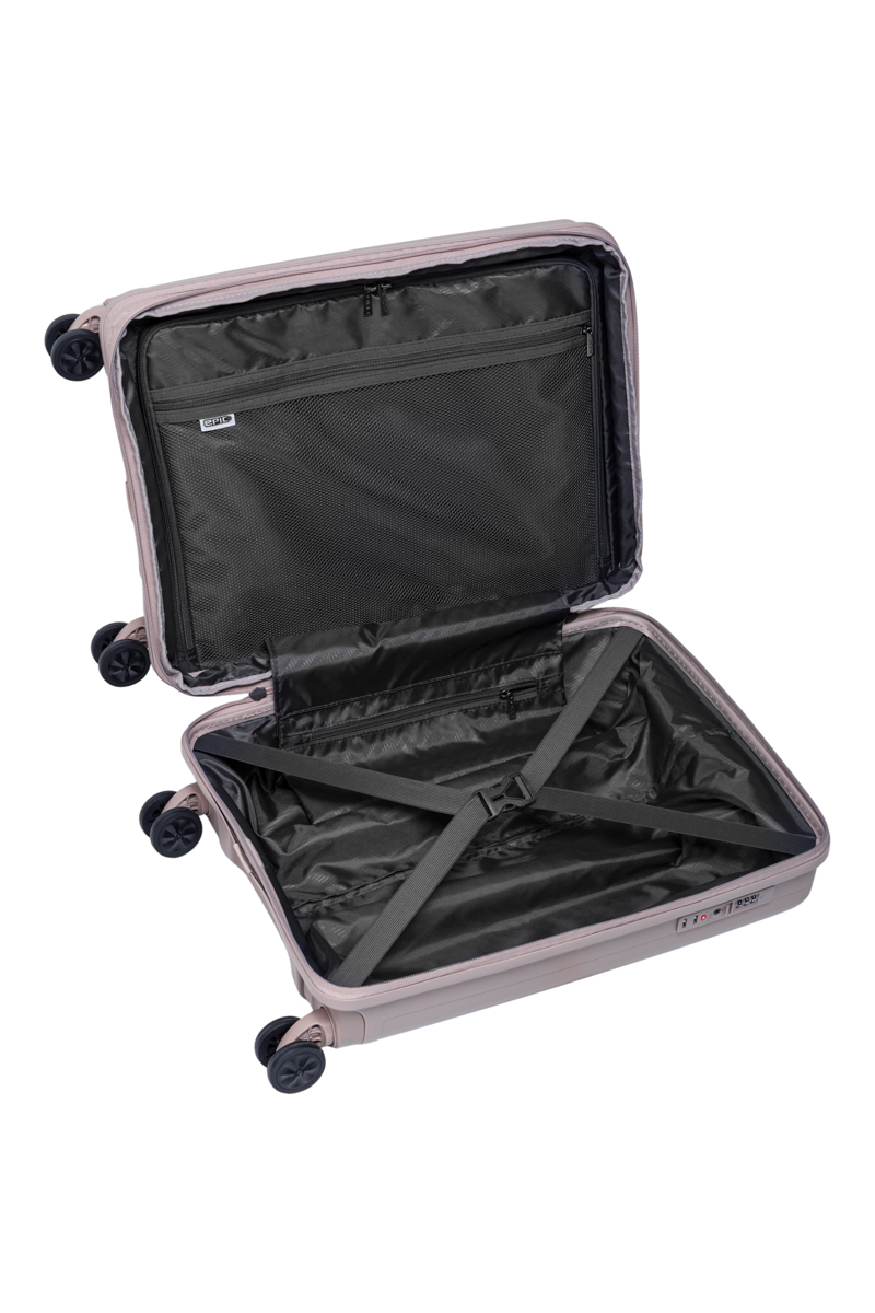 Resväskan har fullt utrustad och fodrad inredning med packremmar, avdelare och flera fickor. Allt du behöver för att hålla ordning och reda!