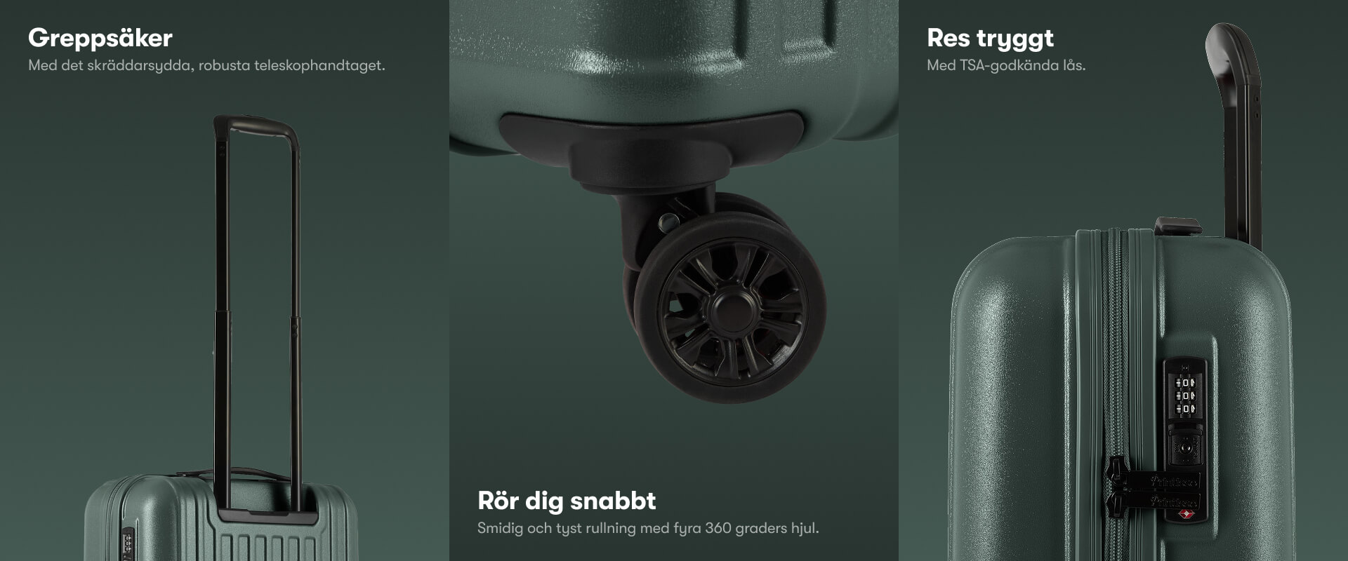 Du ställer enkelt in en 3-siffrig personlig kod med hjälp av instruktionerna som medföljer resväskan.