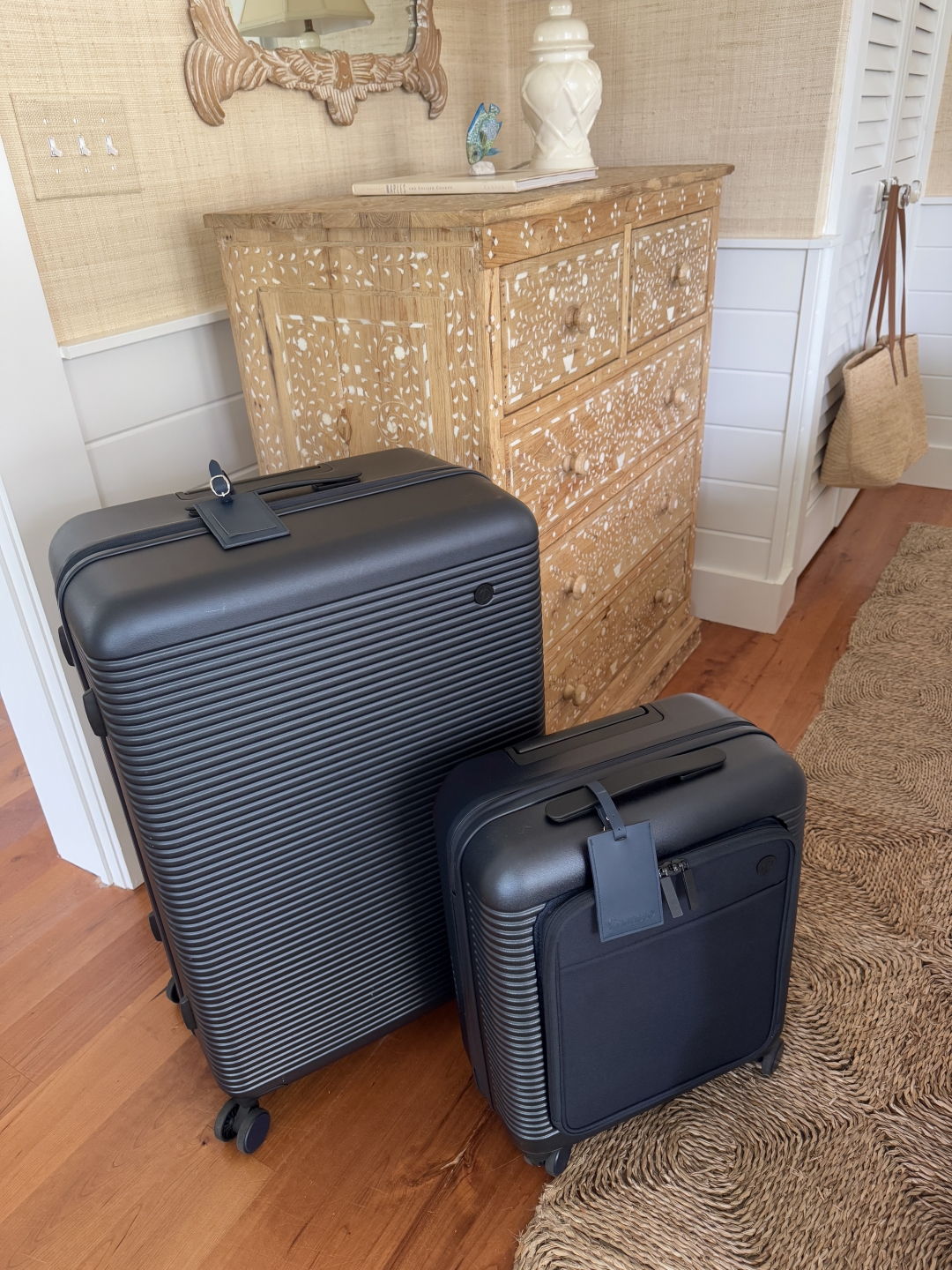 Dessutom ligger varje resväska i en snygg svart kraftig tygpåse för säker förvaring mellan resorna.
